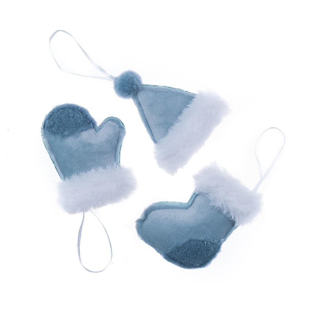 Niebieskie zawieszki z materiału z dodatkiem delikatnego, białego futerka to uroczy dodatek, który podkreśli zimowy klimat projektów DIY.W zestawie znajdziesz świąteczną skarpetę, zimową rękawicę i czapkę z prawdziwym pomponem.Idealne do ozdobienia choinki, wieńca i stroika. Świetnie sprawdzą...