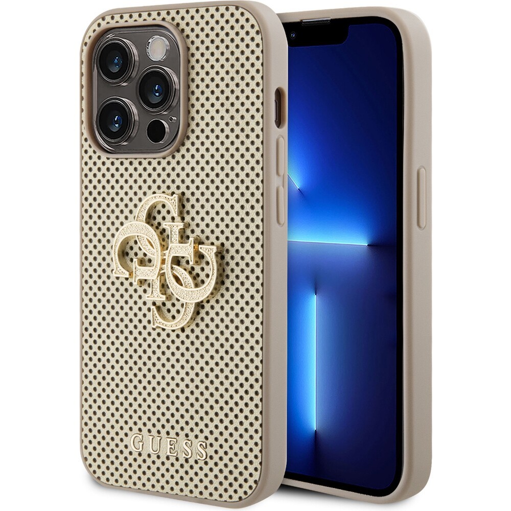 Guess PU Perforated 4G Glitter Metal Logo kryt iPhone 14 Pro zlatý