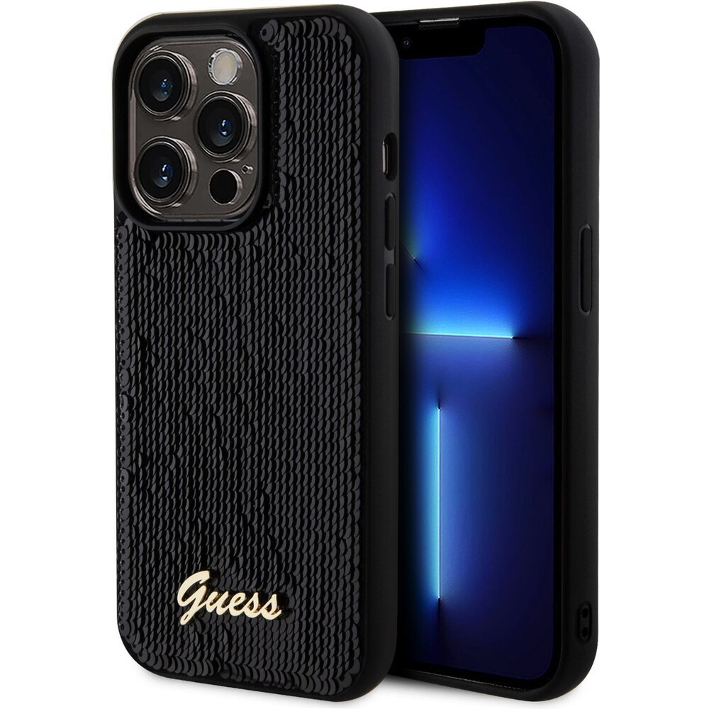 Guess Sequin Script Logo kryt iPhone 14 Pro Max černý