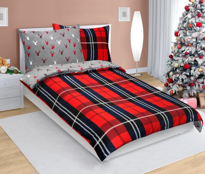Povlečení MIKROFLANEL - kostka - červená, modrá - 140x200, 70x90 cm
