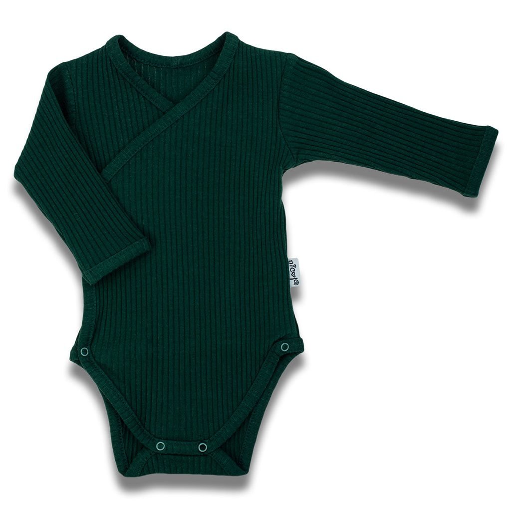 Kojenecké bavlněné body s bočním zapínáním dlouhý rukáv Nicol Bambi zelená - velikost 56 (0-3m)