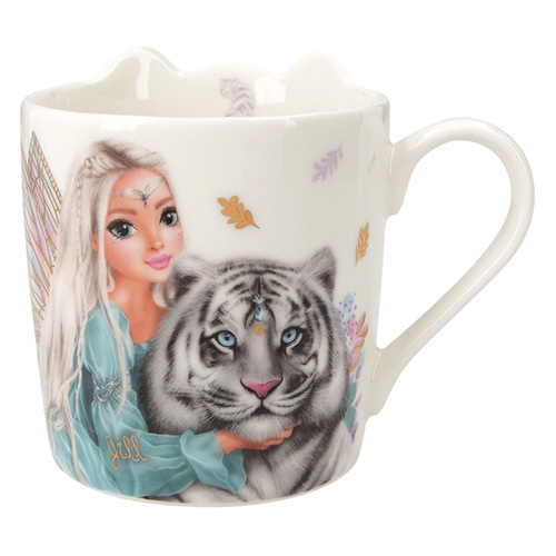 Hrníček ve tvaru hlavy bílého tygra Top Model, Potisk + zlaté detaily