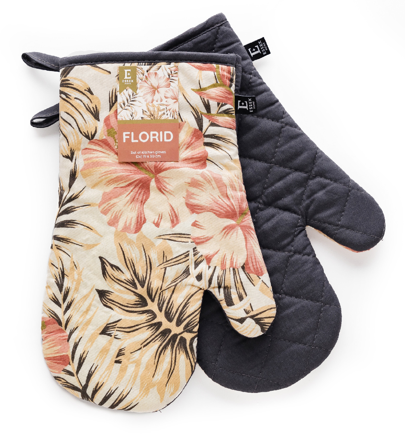 Kuchyňské bavlněné rukavice - chňapky FLORID šedá 100% bavlna 19x30 cm Essex