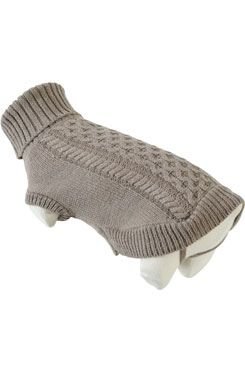Pohodlný jednobarevný svetr s žebrovaným rolákem a copánkovým vzorem na zádech.Svetr má integrovaný otvor pro vodítko a otvory pro nohy .