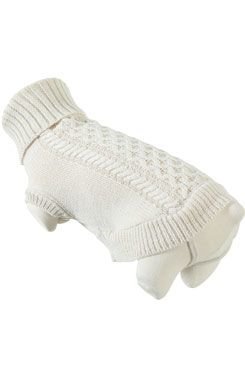 Pohodlný jednobarevný svetr s žebrovaným rolákem a copánkovým vzorem na zádech.Svetr má integrovaný otvor pro vodítko a otvory pro nohy .
