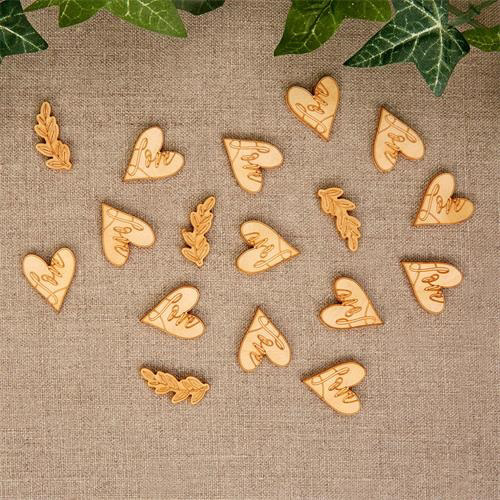 - Přibližně 25 kusů kvalitních dřevěných konfet - Stylový způsob, jak si nadekorovat svatební stoly - Směs vzorů srdce a listů