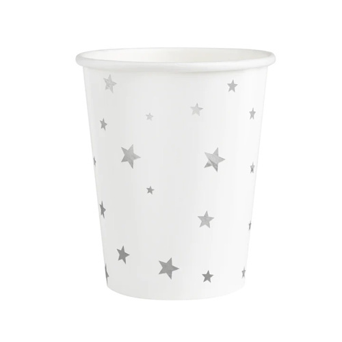 Papírové kelímky bílé se stříbrnými hvězdičkami 220 ml - 6 ks
