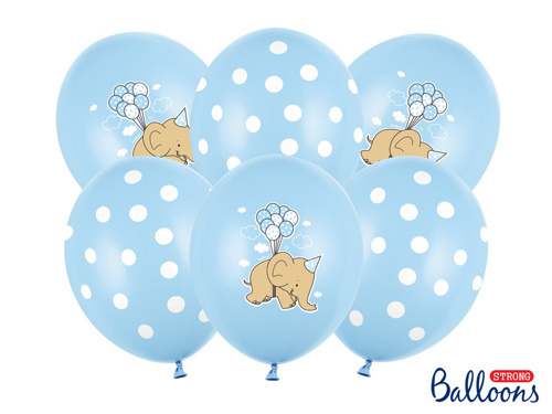 Balony lateksowe ze słonikiem baby blue, są w całości zadrukowane i dostarczane w rozmiarze 30 cm. Balon nadaje się do nadmuchiwania powietrzem i helem. Czas unoszenia po nadmuchaniu helem to ok. 12 godzin. Rozmiar: 30 cm. Opakowanie: 6 szt. przeczytaj całość