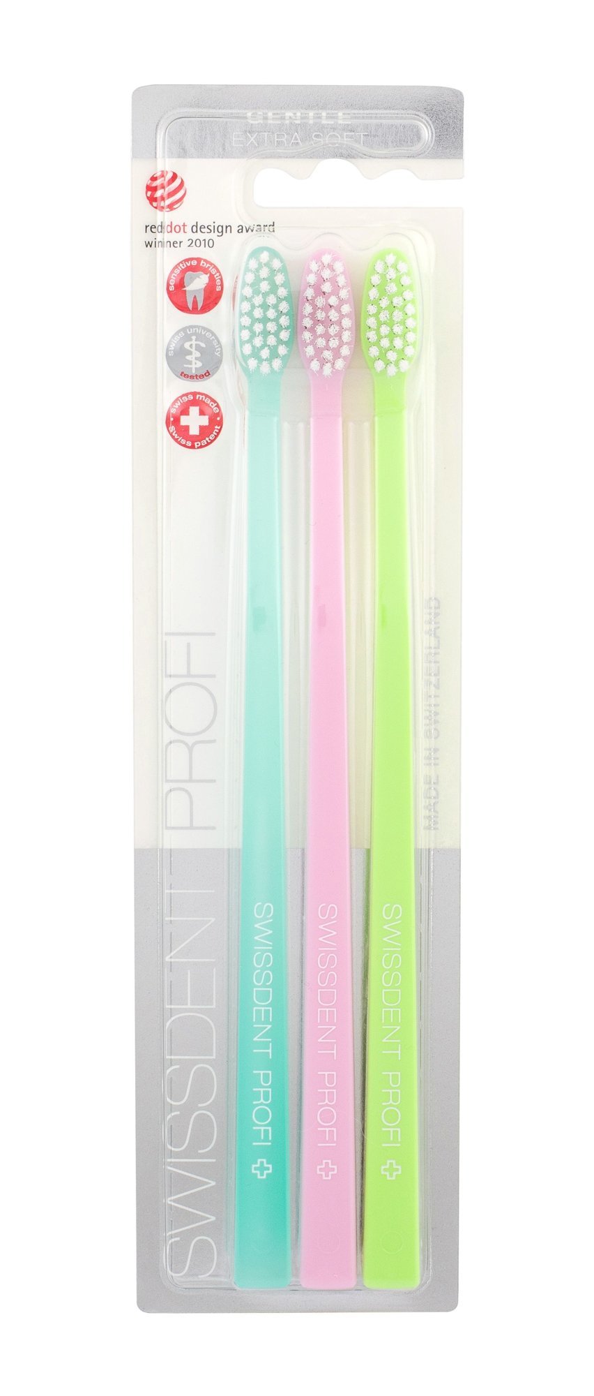 Swissdent Gentle Trio Extra Soft Set ( 2 + 1 ZDARMA zelený + růžový + modro-zelený) - Sada zubních kartáčků unisex