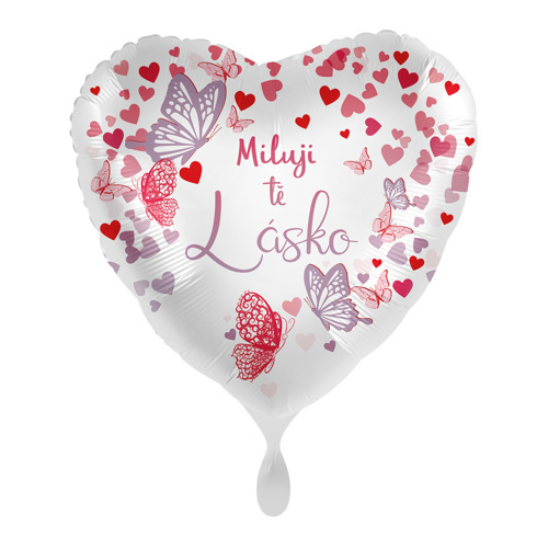 Foliový balonek Miluji tě lásko CZ Srdce motýli 43 cm