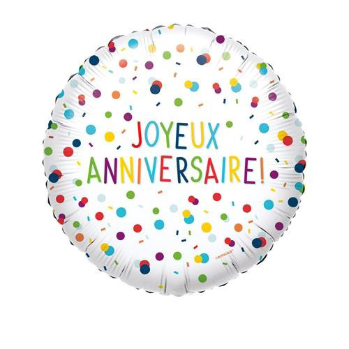Foliový kulatý balonek potištěný barevnými konfetami a nápisem Happy Birthday. Balonek je vhodný pro plnění vzduchem i heliem. Při nafouknutí heliem vydrží v plném stavu 3 až 5 dní, poté se začne pomalu vyfukovat. Rozměry: 43 cm. Balení: 1 ks. przeczytaj całość