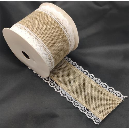 Jutová stuha obšitá krajkou 5 x 450 cm