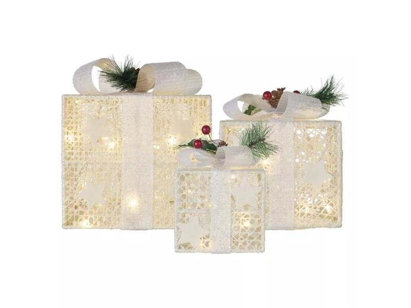 LED dárky s ozdobou, 3 velikosti, vnitřní, teplá bílá. Rozsviťte si Vánoce bez obav z vysokých účtů za elektřinu.
