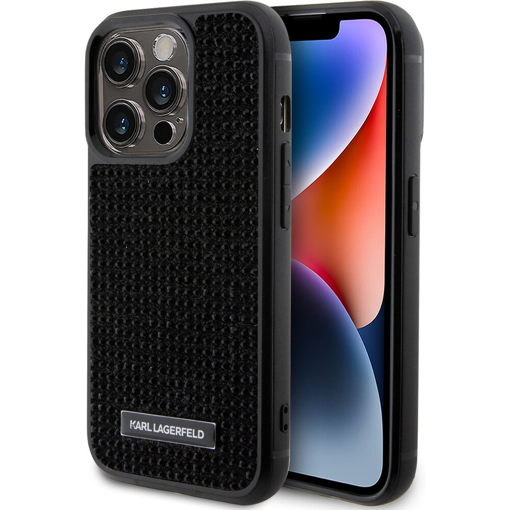 Karl Lagerfeld Rhinestone Plate Metal Logo kryt iPhone 15 Pro černý