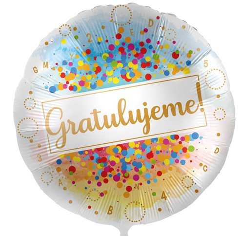 Foliový balonek Gratulujeme Barevné konfety CZ - 43cm