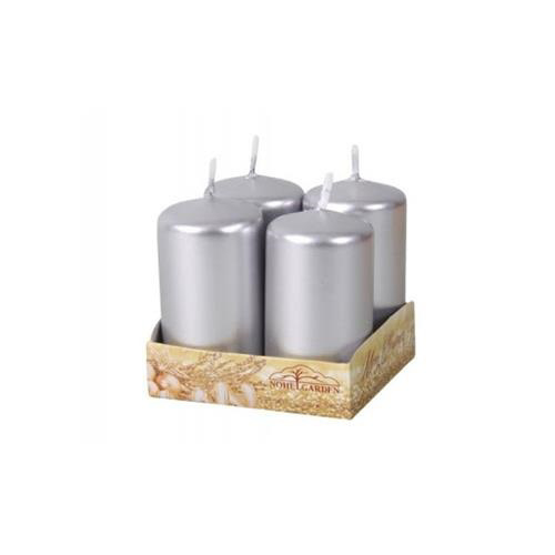 Svíčky stříbrné metalické 4 x 8 cm - 4 ks