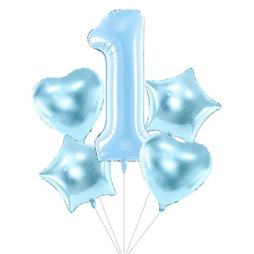 Sada prémiových  fóliových balonků v světle modré barvě. Velikost fóliových balonků ve tvaru hvězd a srdcí je 45 cm, velikost číslice je 86 cm. Balení: 5 ks. Barevnost: Modrá Sada obsahuje 4 x fóliový balonek tvarovaný, 1 x fóliový balonek číslo, návod. K výrobě budete potřeboval ještě 120 litrů... przeczytaj całość