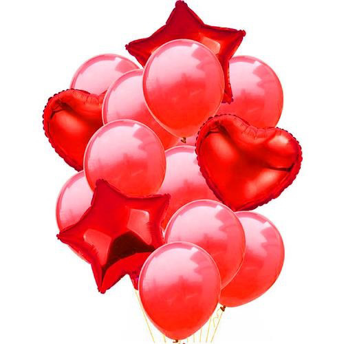 Sada prémiových latexových a fóliových balonků. Balení obsahuje 4 kusy foliových červených srdcí o průměru 45 cm a 10 kusů latexových červených balonků o průměru 30 cm. Balonky jsou vhodné na nafouknutí heliem i vzduchem. Sada je vhodná na oslavu Valentýna, výročí...