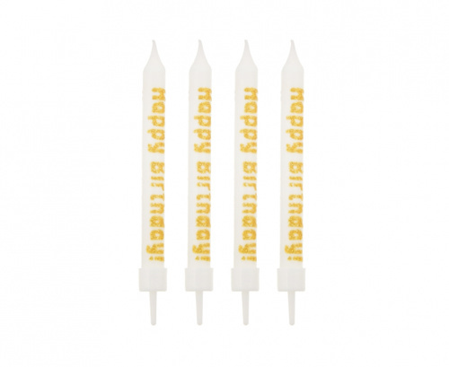 Svíčky v bílé barvě a se zlatým glitrovým potiskem Happy Birthday jsou skvělou dekorací na narozeninový dort. V balení jsou i držátka na svíčky. Balení: 12 ks. przeczytaj całość