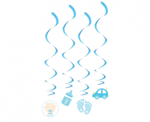 Závěsné spirály na party a oslavu narození chlapečka. Rozměr: 60 cm. Balení 4 ks. przeczytaj całość
