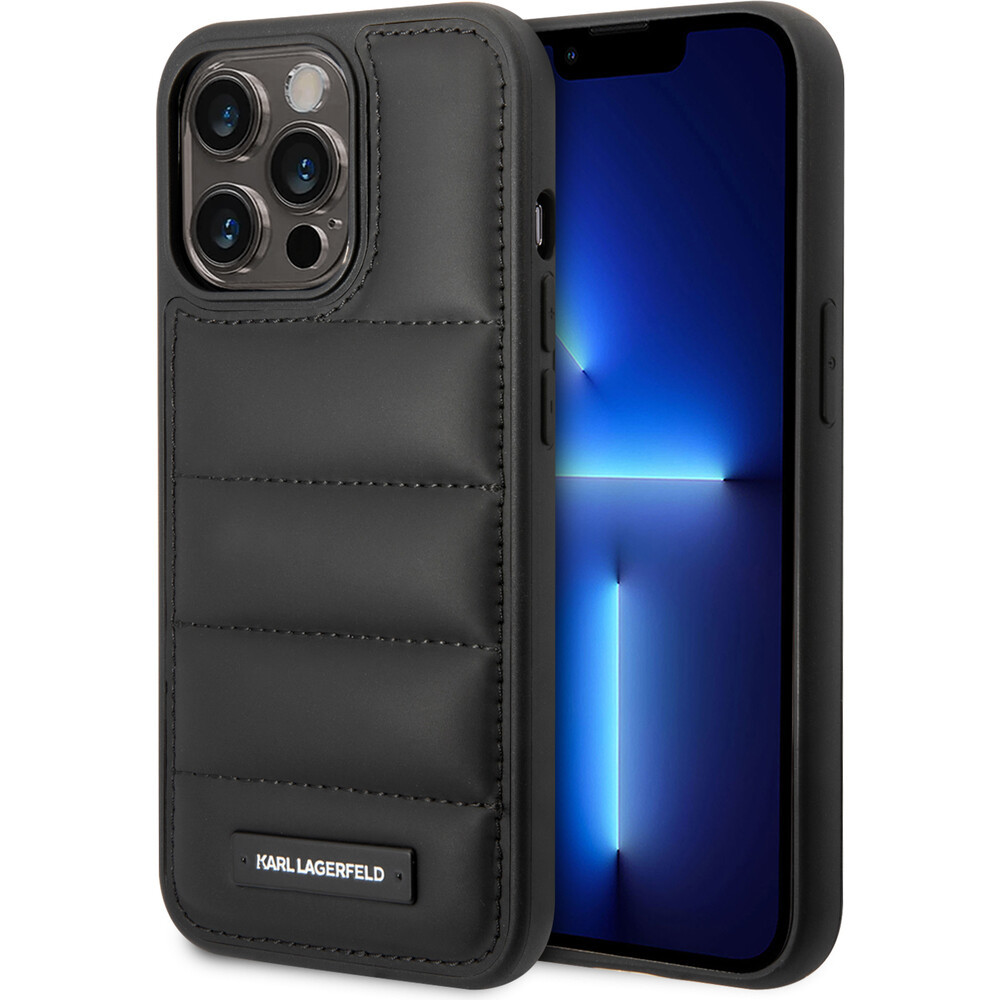 Karl Lagerfeld Quilted Puffy Metal Logo kryt iPhone 15 Pro černý