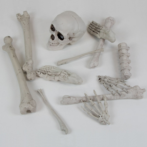 Świetna dekoracja na halloweenowy wieczór, składająca się z 12 realistycznie wyglądających kości i czaszki w naturalnej wielkości. Idealna do uzupełnienia innych dekoracji w miejscu organizacji przyjęcia halloweenowego. Kości należą do podstawowych, ale niezbędnych dekoracji na prawdziwą horrorową imprezę. Wielkość: od 20 do 30 cm Opakowanie: 12 szt. Materiał: plastik