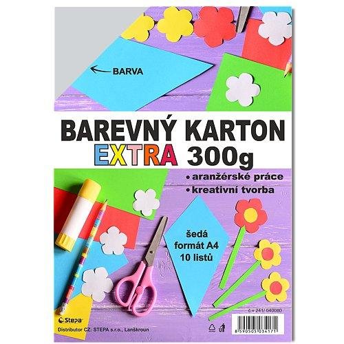 Barevný karton EXTRA 300g A4/10listů - šedý
