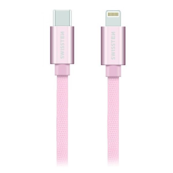 Swissten Datový Kabel Textile USB-C / Lightning 1,2 M Růžovo/Zlatý