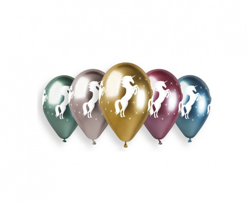 Latexové chromové balonky Jednorožec 33 cm - 5 ks