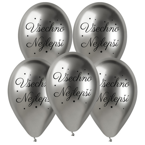 Balonky Chrome Všechno nejlepší CZ Stříbrné 5 ks, 33 cm