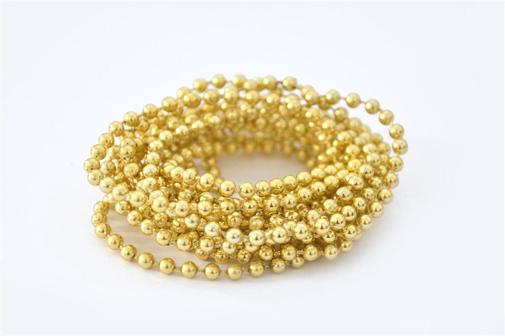 Łańcuch perełki - dekoracja choinkowa, długość ok. 270 cm. Średnica jednej perełki ok. 6 mm. Kolor złoty. przeczytaj całość