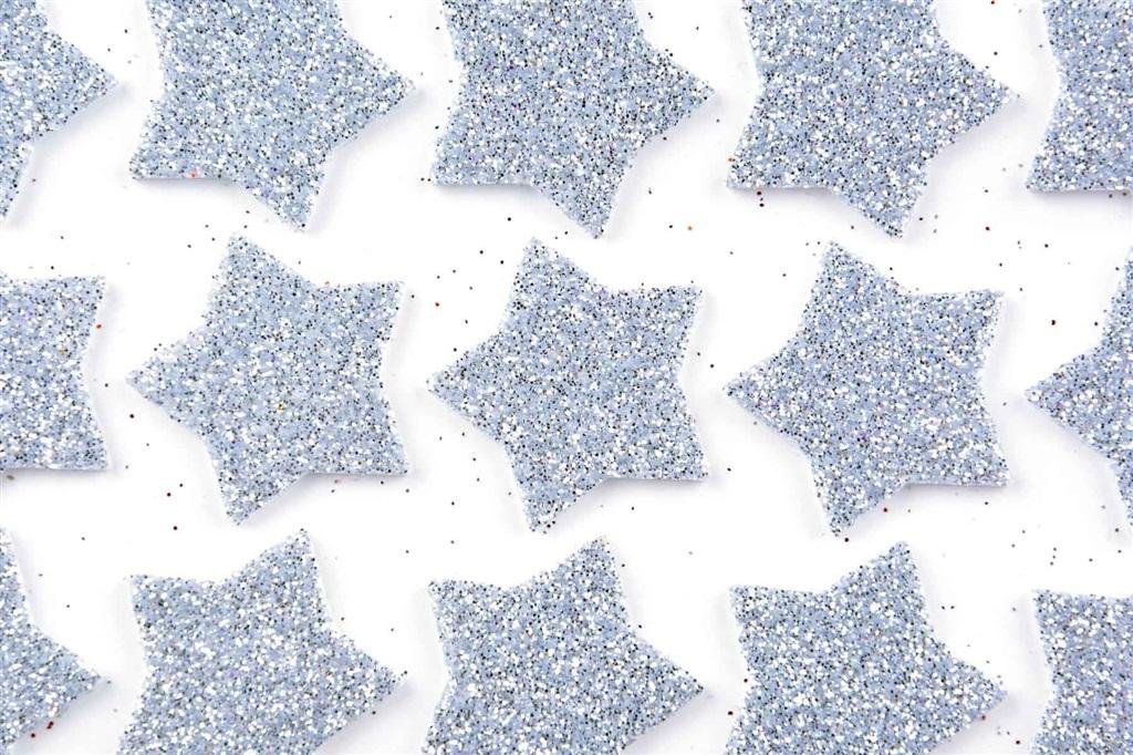 Brokatowe srebrne naklejki wykonane z pianki w kształcie gwiazdek. Dają efekt elementów wypukłych na dekorowanej powierzchni. Idealne do kartek świątecznych, zimowych dekoracji, prac szkolnych, zabaw kreatywnych i DIY. Samoprzylepna ozdoba na blistrze o wymiarze: 11,5 x 25 cm. przeczytaj całość