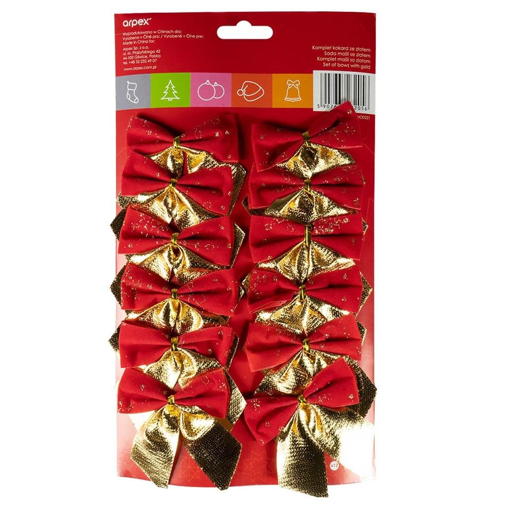 Dekoracje bożonarodzeniowe, Ozdoba świąteczna - komplet kokard ze złotem 12 sztuk na blistrze. Wymiar kokardki: 7 x 7,5 cm. przeczytaj całość