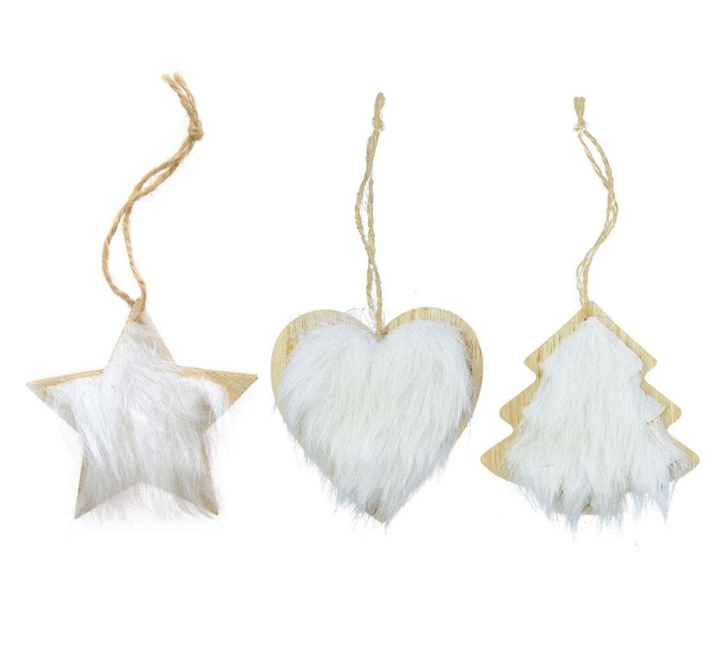 Drewniana zawieszka z futerkiem. 1 sztuka. Rozmiar ok. 7,5 - 8 cm przeczytaj całość