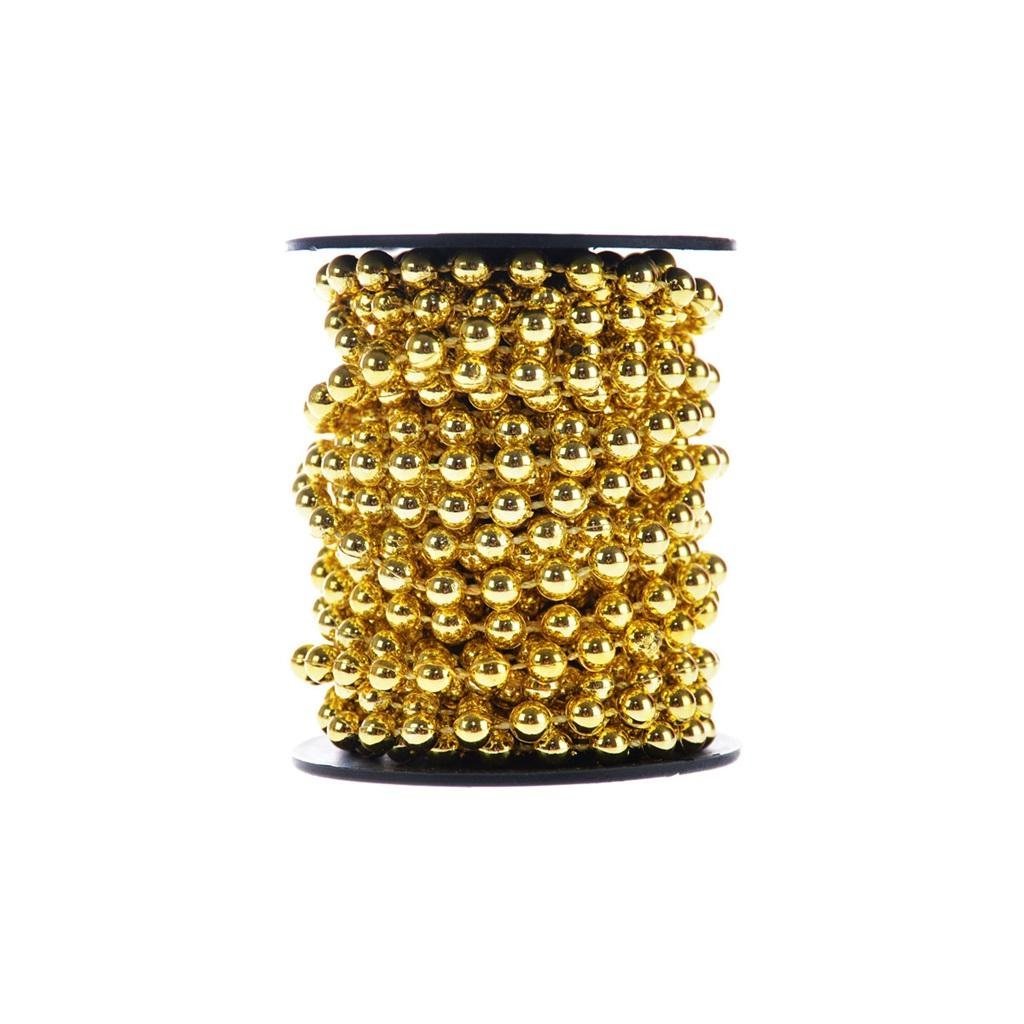 Łańcuch dekoracyjny z koralików w kolorze złotym o rozmiarze 6 mm na szpuli. Uniwersalna, błyszcząca dekoracja świąteczna na choinkę, do dekoracji domu, stroików. Idealnie pasuje do różnych aranżacji. Łańcuch o długości 6 m. przeczytaj całość