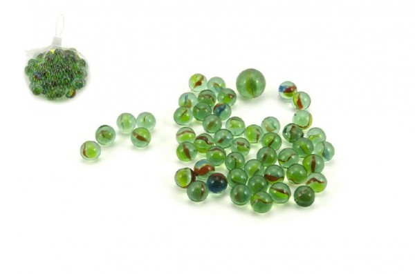Kuličky cvrnkací skleněné cca 50ks 1,5cm v síťce