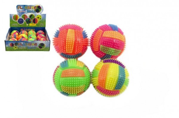 Míček svítící a pískací gumový 7,5cm v sáčku 12ks v boxu