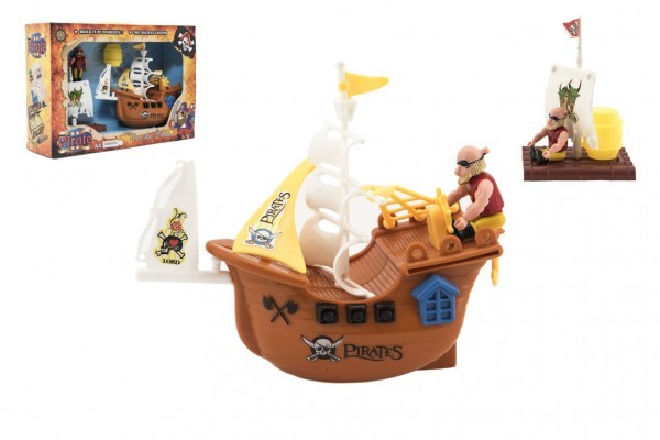 Pirátská loď + doplňky plast v krabici 28x19cm