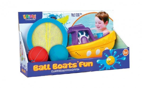 Sada lodička s míčky do vany plast 20cm v krabici 33x19x12cm