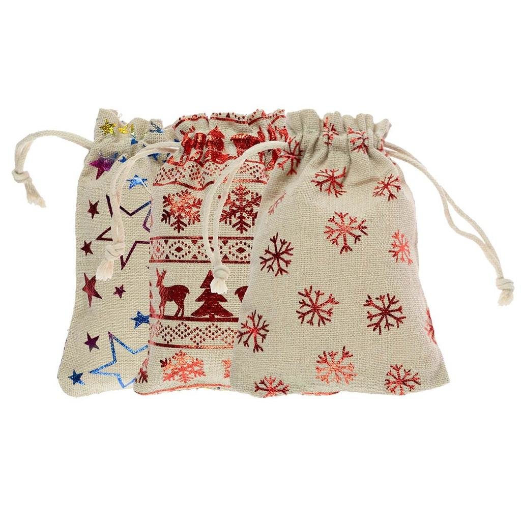 Jutowe worki na prezenty z nadrukiem 3szt