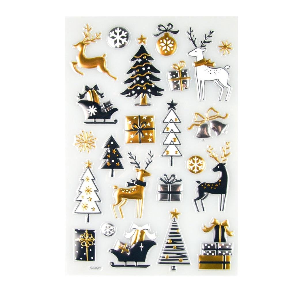 Zestaw naklejek 3D glamour w zimowe i świąteczne wzory. Bożonarodzeniowe wypukłe naklejki w kolorach złota, czerni oraz bieli. Zestaw samoprzylepnych naklejek do prac kreatywnych, kartek świątecznych, prac szkolnych. Wymiary blistra to 25x14,5 cm. W opakowaniu znajduje się 1 blister. przeczytaj całość