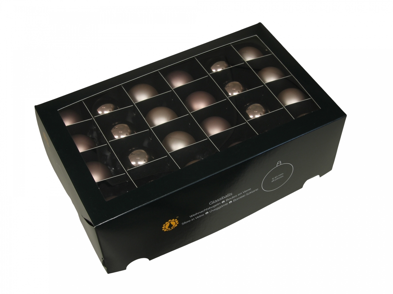 Sada 48 ks skleněných baněk růžových kouřových. V sadě jsou matné a lesklé baňky.Materiál: skloRozměr:průměr 4 cm przeczytaj całość