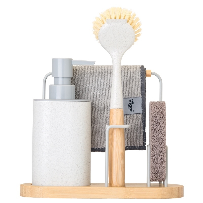 4 dílná sada na umývání nádobí bílá/šedá Vintage VIGAR