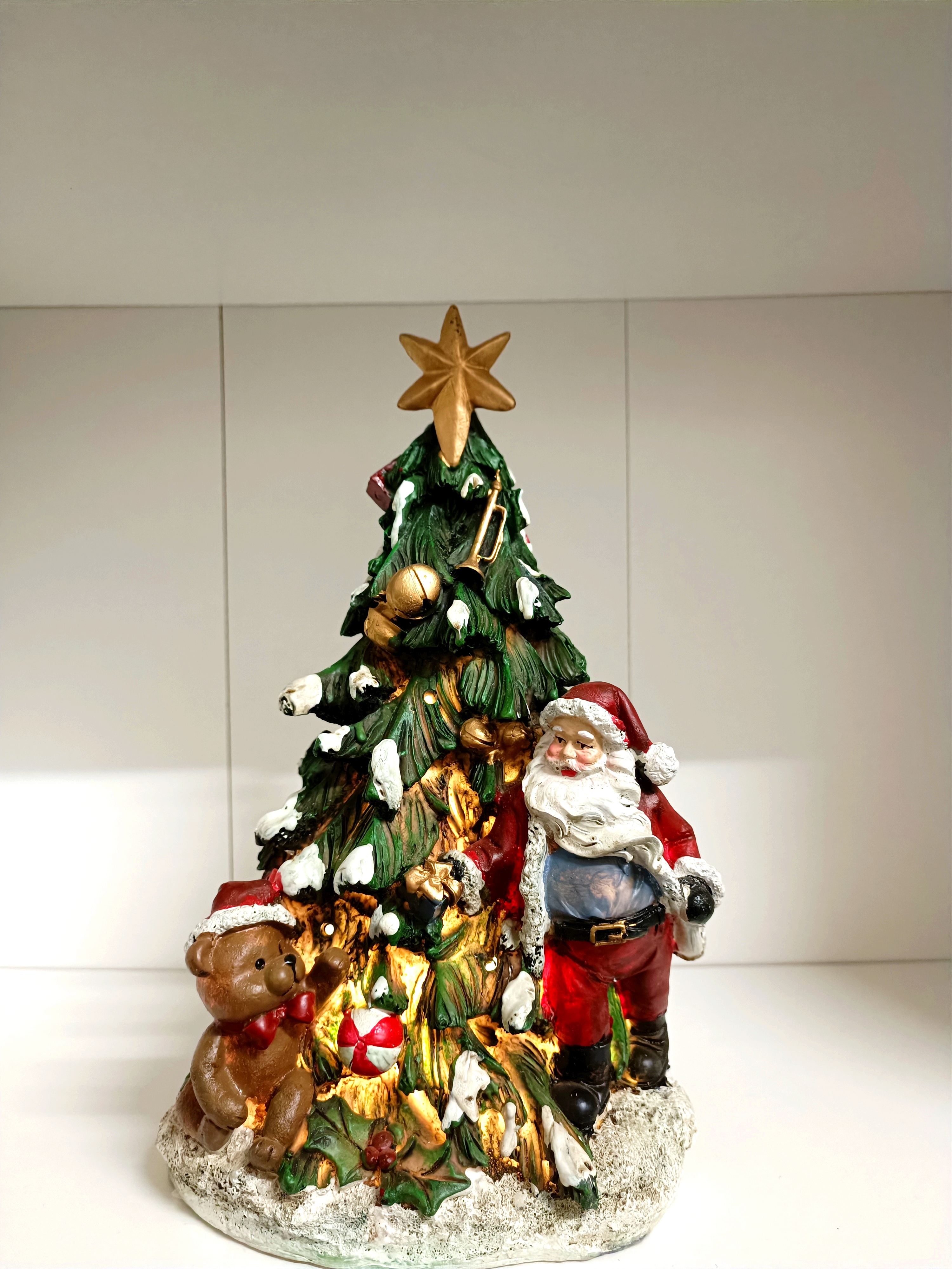 Svítící vánoční soška strom se Santou Clausem a medvídek 26cm VÁNOCE BRANDANI