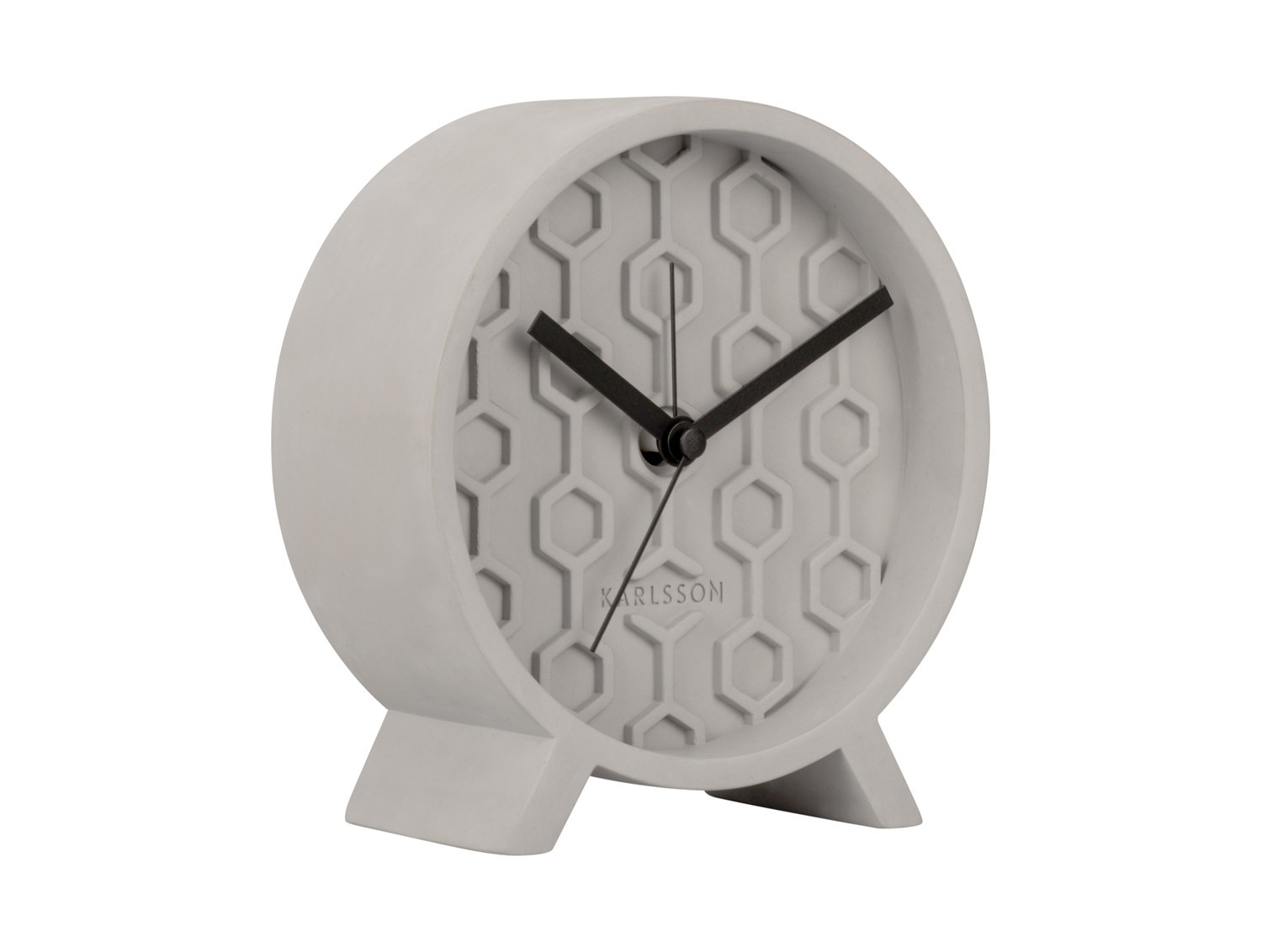 Budzik wykonano z wysokiej jakości betonu, co nadaje mu wyjątkowy, surowy wygląd i zarazem bardzo nowoczesny charakter. Jego cichy mechanizm sprawia, że nie będzie przeszkadzał podczas snu czy pracy, a zegar z mechanizmem kwarcowym gwarantuje dokładny pomiar czasu. Dzięki wymiarom 15 x 6 x 13 cm budzik jest wystarczająco duży, aby był łatwo widoczny, a jednocześnie nie zajmuje dużo miejsca na nocnym stoliku czy biurku.
