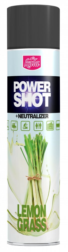 Neutralizuj zapachy i odświeżaj duże przestrzenie w mgnieniu oka. Odświeżacz powietrza Kala POWER SHOT - Trawa cytrynowa to idealny pomocnik, który skutecznie usunie nieprzyjemne zapachy, a jednocześnie wypełni przestrzeń przyjemnym, świeżym aromatem trawy cytrynowej.