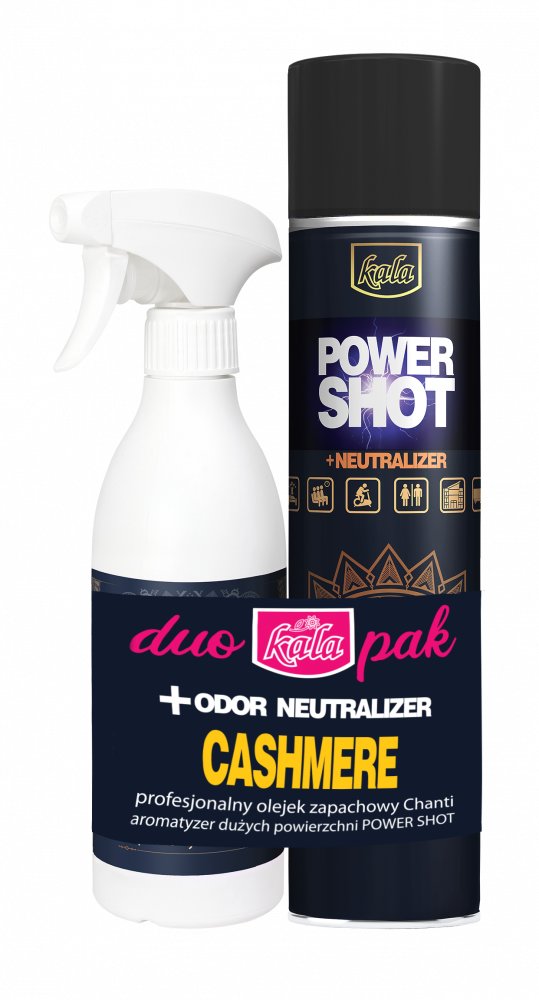 Neutralizator zapachów, odświeżacz aromatu Kala POWER SHOT 600 ml to preparat z rewolucyjnym sposobem dozowania, dzięki któremu jedno naciśnięcie zaworu (ok. 1 sekunda) neutralizuje nieprzyjemne zapachy i aromatyzuje ok. 200 m3. POWER SHOT zawiera substancje aktywne, dzięki którym nieprzyjemne zapachy są neutralizowane, a nie maskowane, jak ma to miejsce w przypadku większości odświeżaczy powietrza. Oprócz neutralizacji nieprzyjemnych zapachów POWER SHOT zapewnia także aromatyzację pomieszczenia jednym z zapachów dostępnych w linii POWER SHOT. Dzięki Kala POWER SHOT możesz natychmiast zneutralizować „problem zapachowy”, nawet jeśli wystąpił na dużej powierzchni. Dzięki Kala POWER SHOT możesz natychmiast odświeżyć i perfumować duże przestrzenie | targowiska, sale weselne, sale konferencyjne, baseny, kluby fitness, centra handlowe… Zapraszamy do zapoznania się z całą gamą neutralizatorów i odświeżaczy Kala POWER SHOT