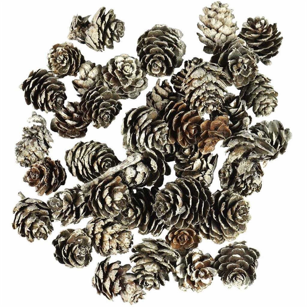 Naturalne szyszki modrzewiowe farbowane, sprawiające wrażenie ośnieżonych. Element dekoracyjny idealny do tworzenia stroików, wieńców, dekoracji jesiennych i świątecznych. Szyszki o wielkości około 2 cm. W opakowaniu znajduje się 65 g produktu. przeczytaj całość