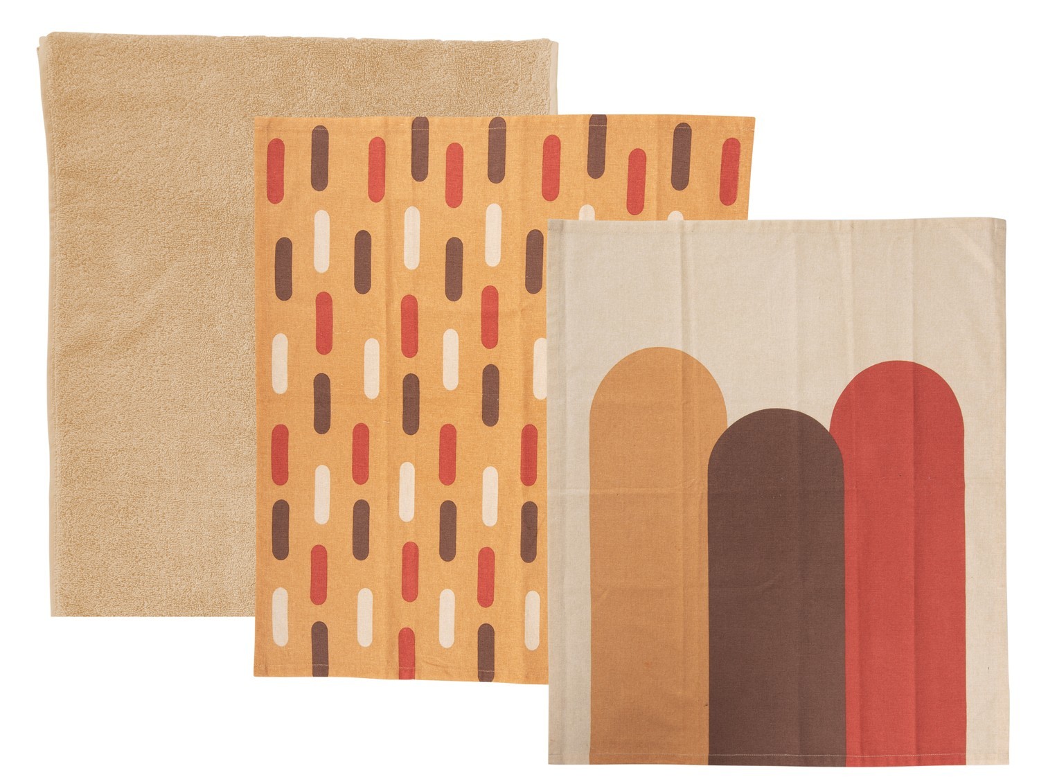 Kuchyňské utěrky 3ks pískově hnědá nefrit Present Time