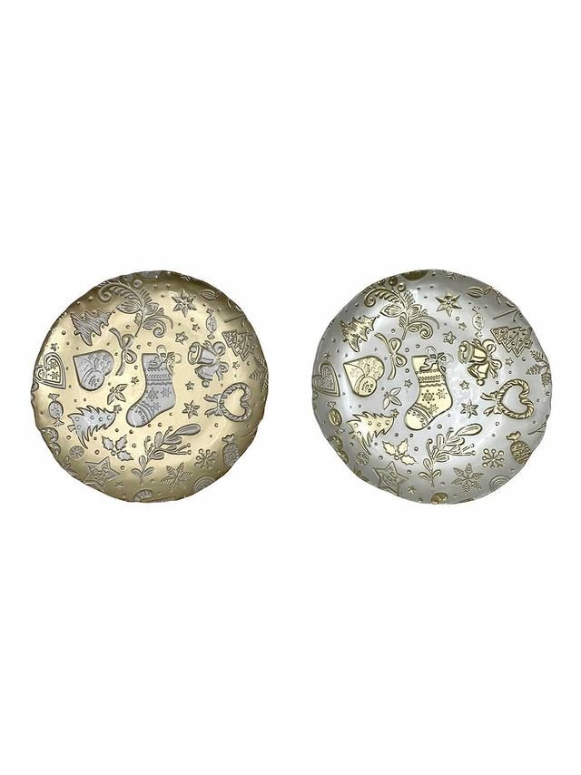 Set 2 kusů skleněných talířů v bílé barvě se zlatou vánoční výzdobou a ve zlaté barvě s bílou výzdobou.